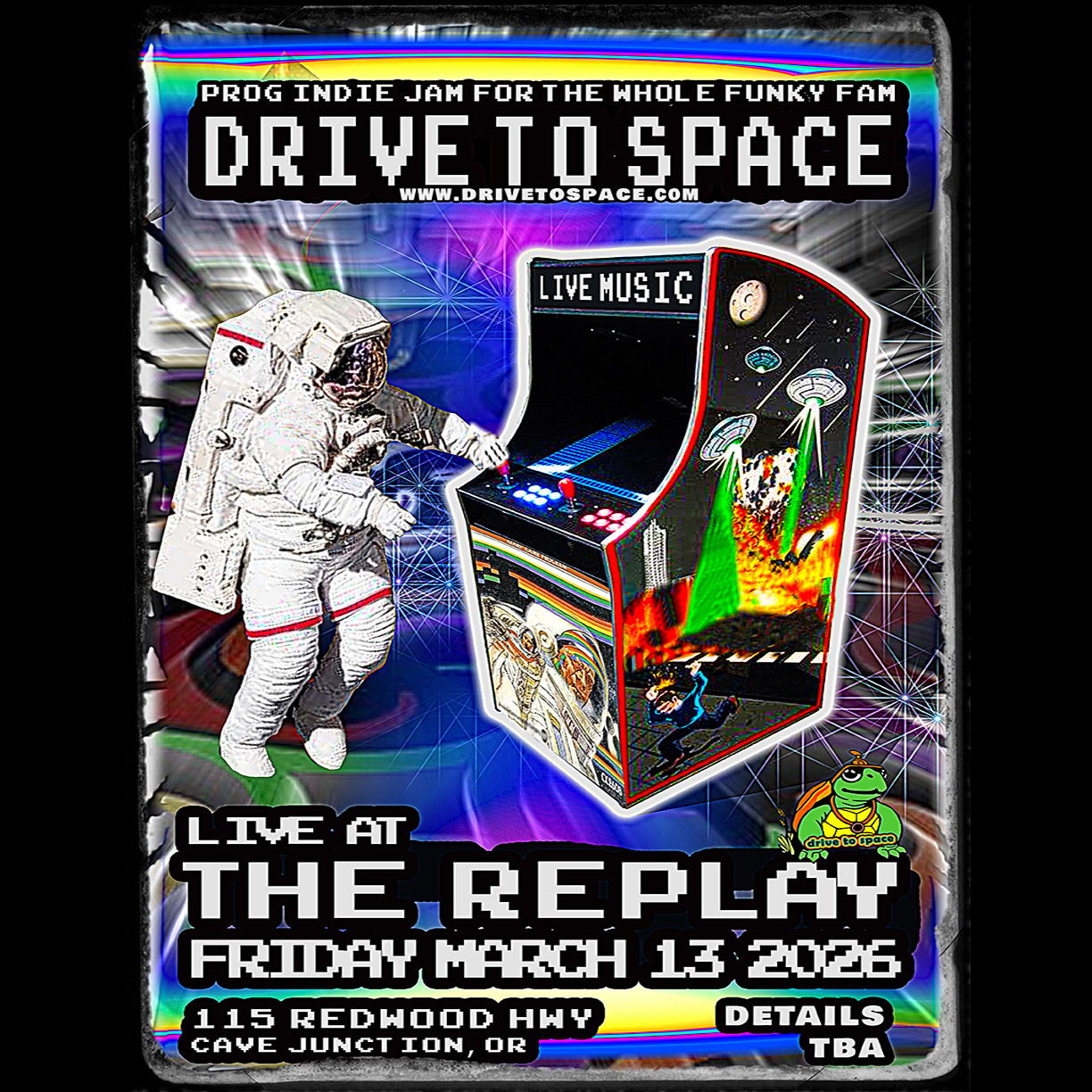 Drive To Space is a four piece prog funk rock Americana band from Eugene, Oregon. The group fuses their energy into a cohesive, mind-meld of sound - complete with tempo and key changes, odd meters, tight jams, and well-written, complex material interspersed with improvisation.